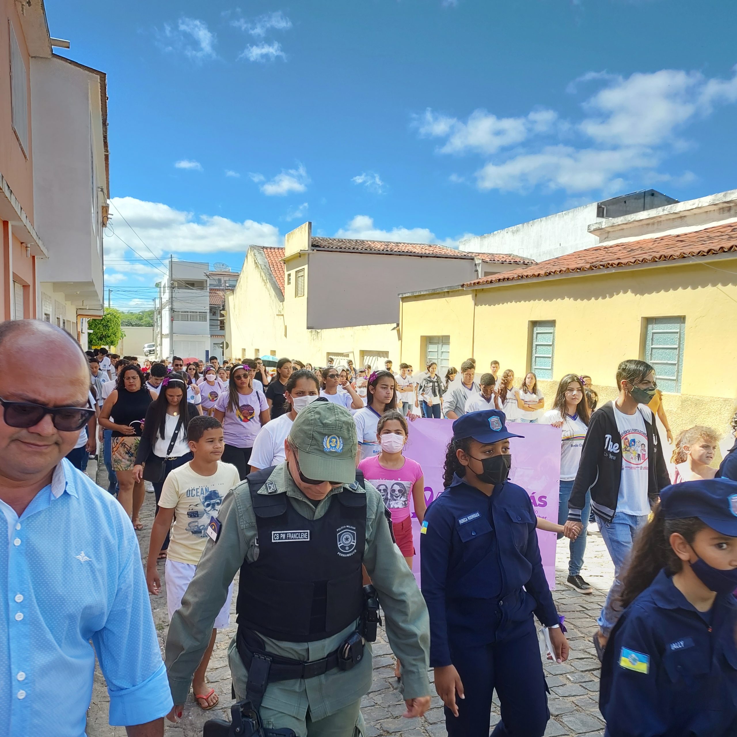 Após as falas iniciais, o grupo percorreu algumas ruas da cidade, encerrando a atividade em frente ao Banco do Brasil. Participaram do evento o prefeito Anchieta Patriota, o vice-prefeito Júnior de Mocinha, equipe do Governo Municipal: secretários/secretárias, diretores, coordenadores, representantes do Conselho Tutelar, professores, alunos da EREM Joaquim Mendes, representantes e crianças do Serviço de Convivência e Fortalecimento de Vínculos.