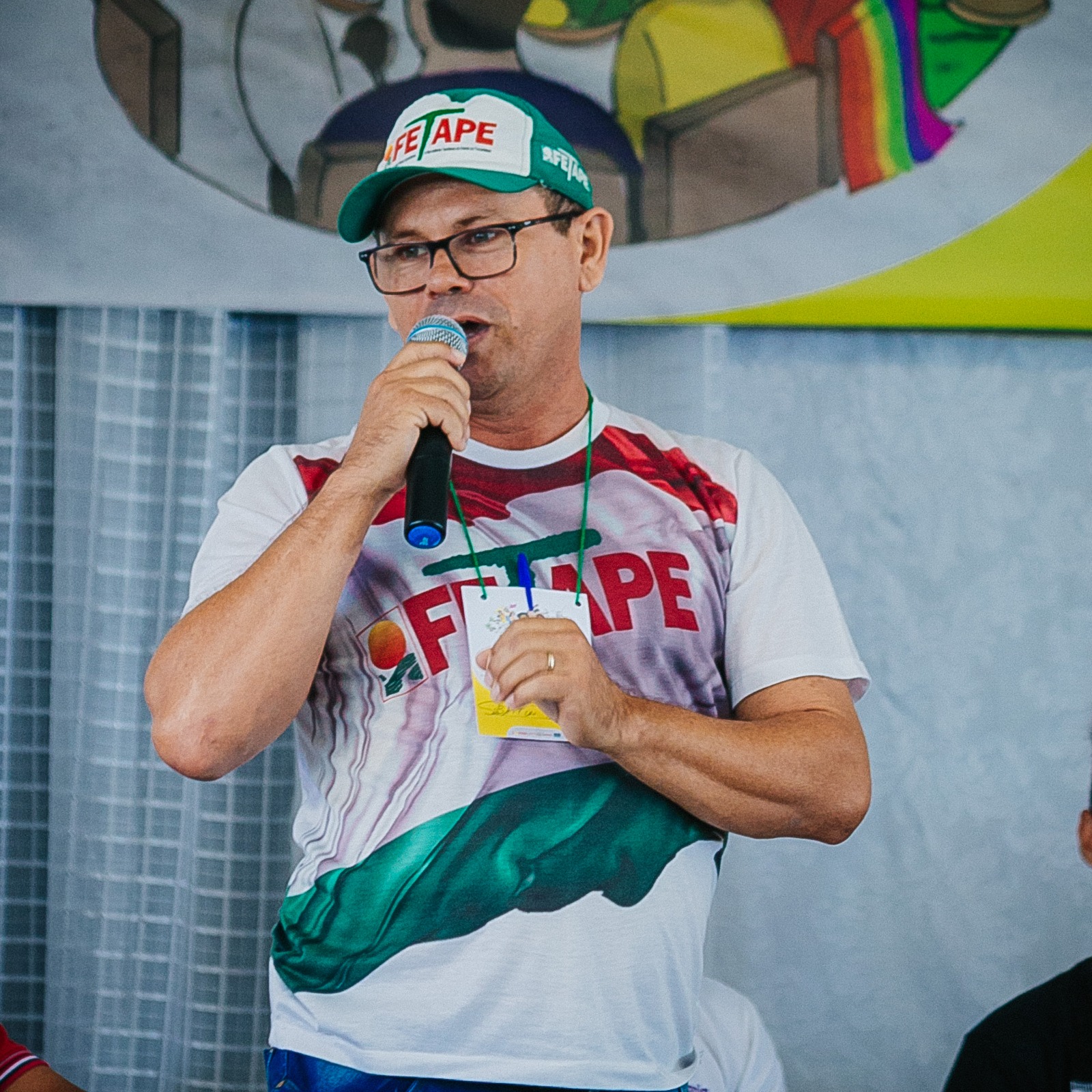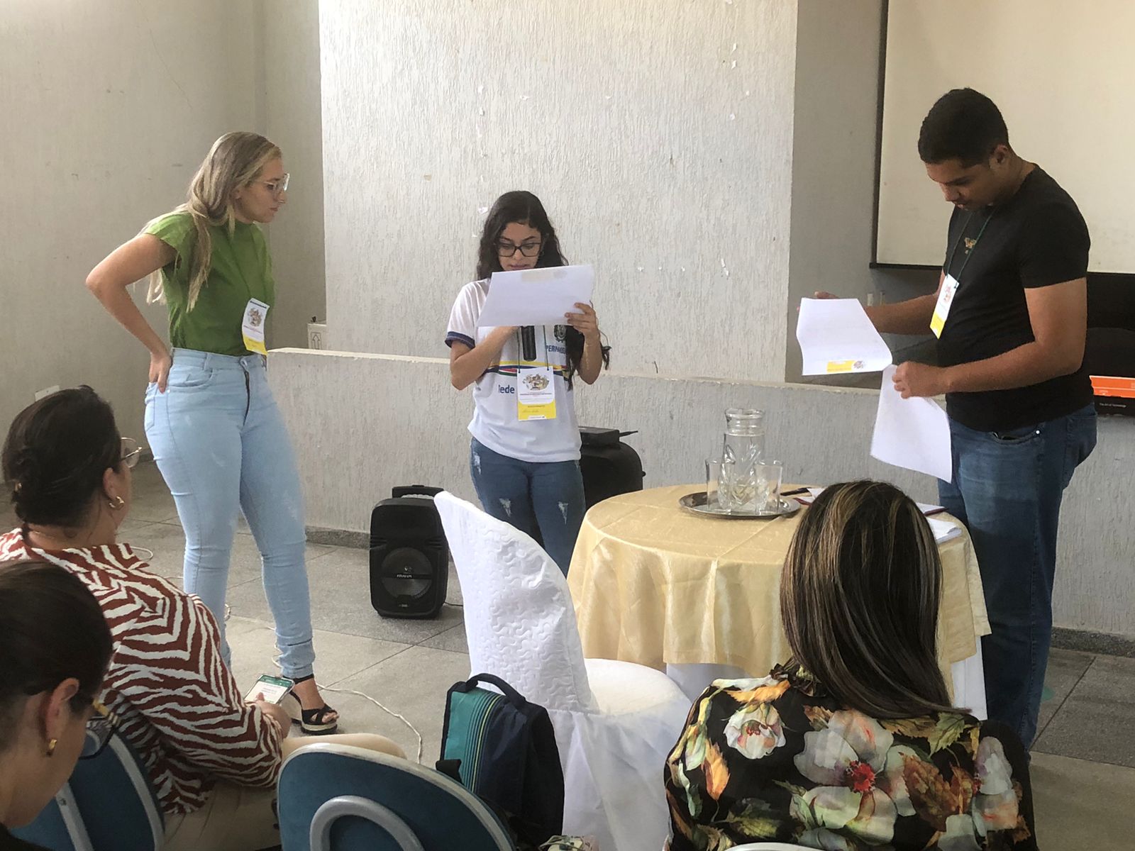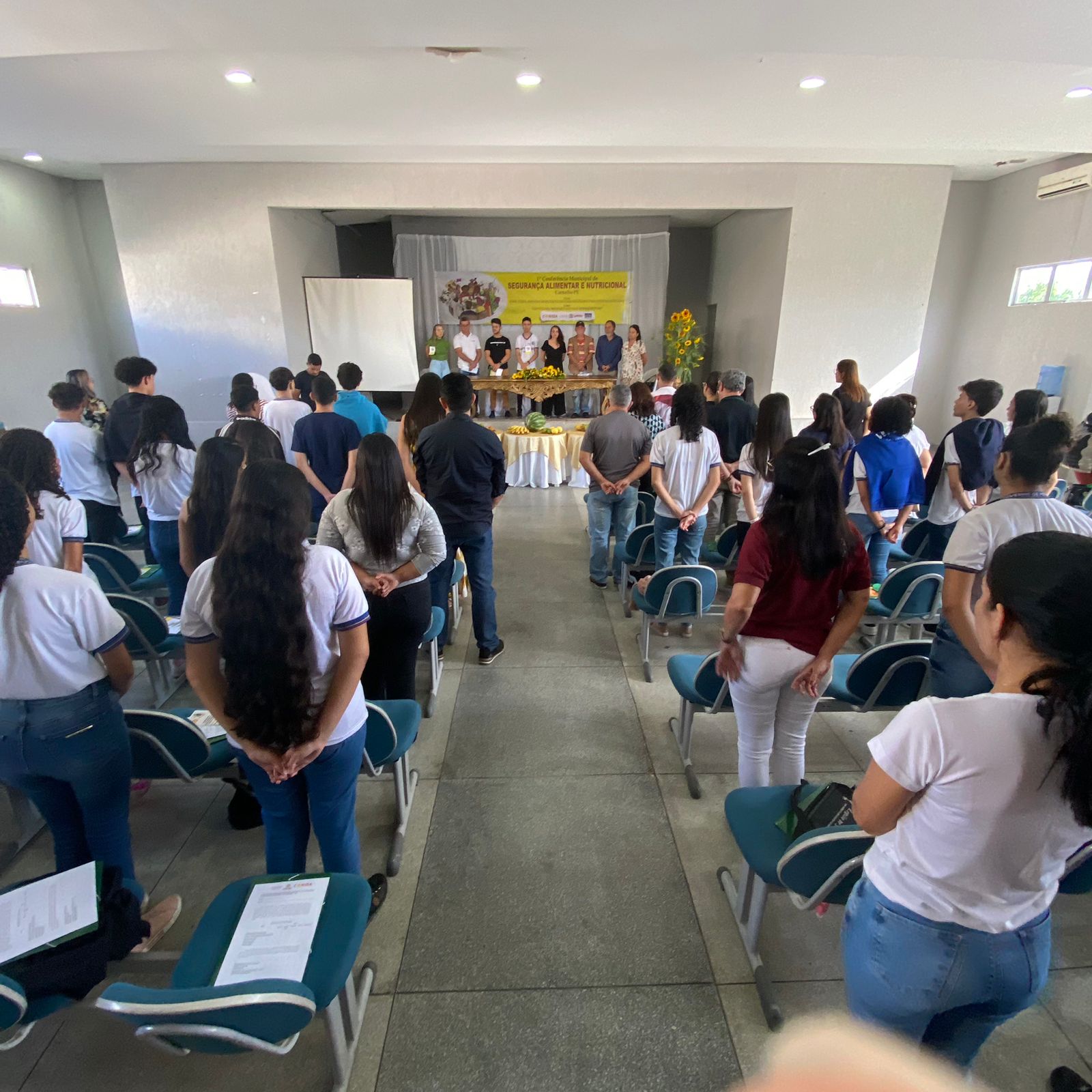 Na mesa de abertura, o prefeito Anchieta Patriota, o vice-prefeito Júnior de Mocinha, as secretárias Thaynnara Queiroz (Assistência) e Cecília Patriota (Educação), os secretários Anchieta Alves (Agricultura), Everaldo Patriota (Governo); os integrantes do CONSEA-Carnaíba, Uedla Patriota e Marcos Panta; representante do Consea Estadual, Adilson Viana; representante da juventude, presidente do Grêmio Estudantil Alan Jones; presidente do CAE, Maria Carolina Bessa; presidente da Assemuca, João Teotônio e Sebastião Neto presidente do Sindicato dos Trabalhadores Rurais de Carnaíba.