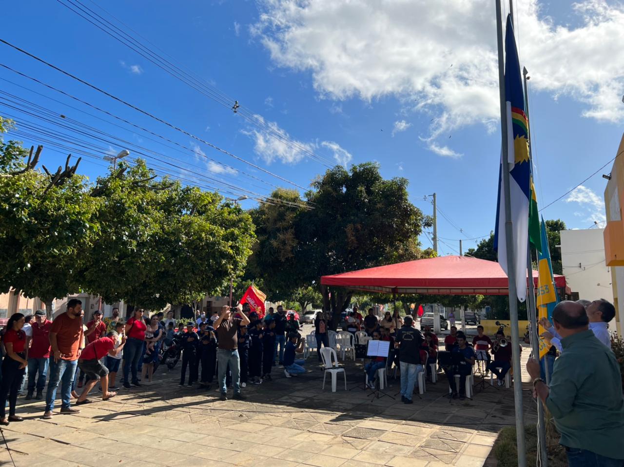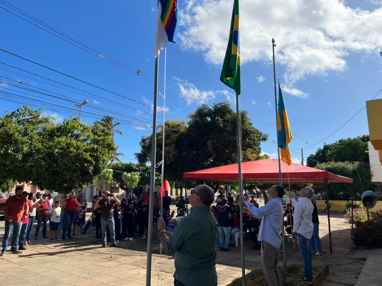 Na manhã da quarta-feira, 07 de setembro, o prefeito Anchieta Patriota, acompanhado do vice-prefeito Júnior de Mocinha e do vereador José Jesus (Calango) fez o hasteamento das bandeiras do Pavilhão Nacional, em frente à Prefeitura de Carnaíba.